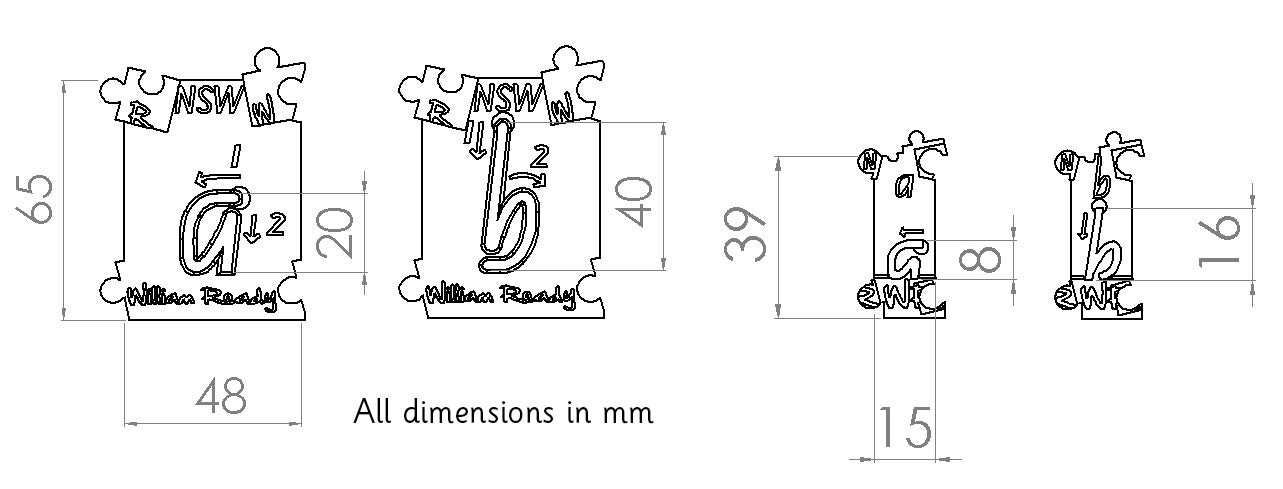 In fonts - VIC (Vic Modern Cursive), NSW, QLD and SA